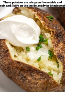 Air Fryer Baked Potatoes are crispy on the outside and soft and fluffy on the inside, made with russet potatoes coated in olive oil and seasoning then air fried until tender, ready in 50 minutes!