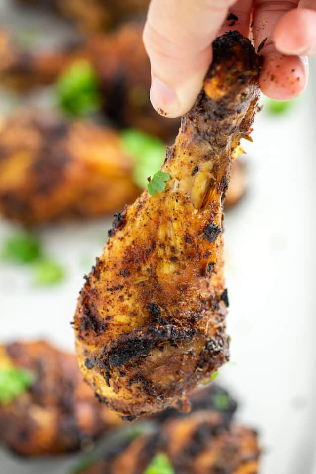 Grilled Chicken Drumsticks marinated in Jamaican jerk marinade and grilled until lightly charred on the outside and tender and juicy on the inside, ready in only 40 minutes!