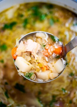 I make an effort not to let leftovers go to waste, and this soup is how I’m using the rest of my Thanksgiving Roasted Spatchcock Turkey. For more ideas, check out my Leftover Turkey Pot Pie Casserole.
