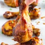 Baked BBQ Chicken Drumsticks are super easy to make, and entirely gluten free. They bake in the oven with your favorite bbq sauce for a dinner that only takes 2 ingredients and is ready in only 45 minutes!